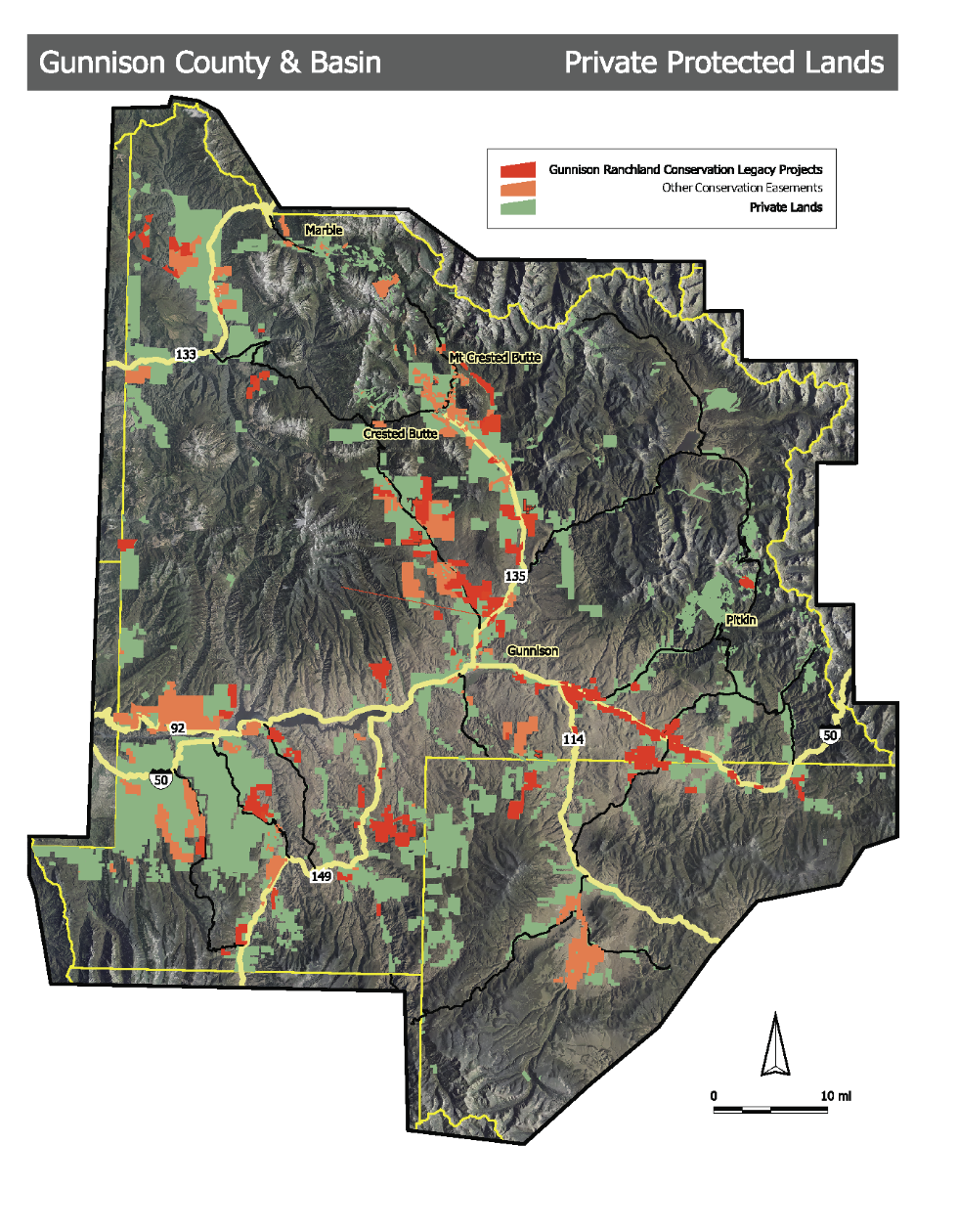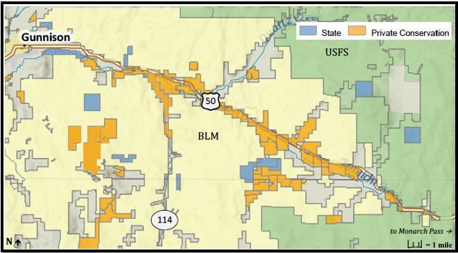 This map of conserved private lands in the Tomichi Creek Valley shows the result. The map tells a story of landowners with a strong conservation ethic. Benefits from their actions are perpetual, increasing in significance as time moves on: